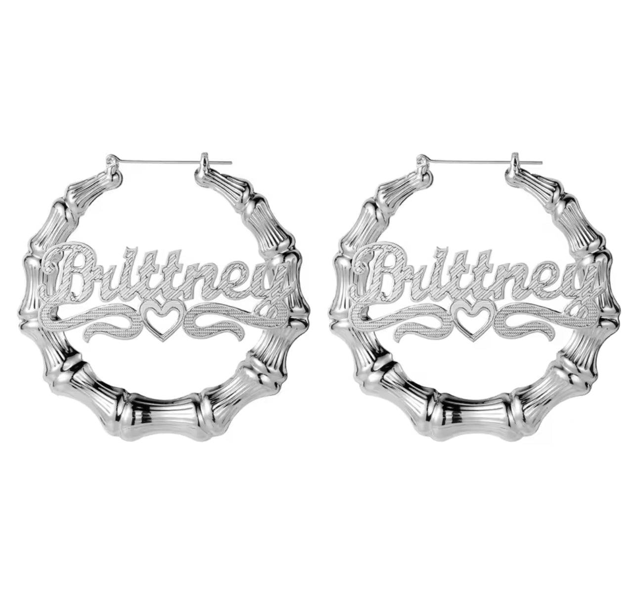 Make these bamboo hoop earrings uniquely yours by personalizing them with your name, a loved one’s name, or a meaningful word. Designed with durable 18K gold or silver plating, they’re built to stand the test of time. Go bold—because the bigger the hoops, the bigger the statement!