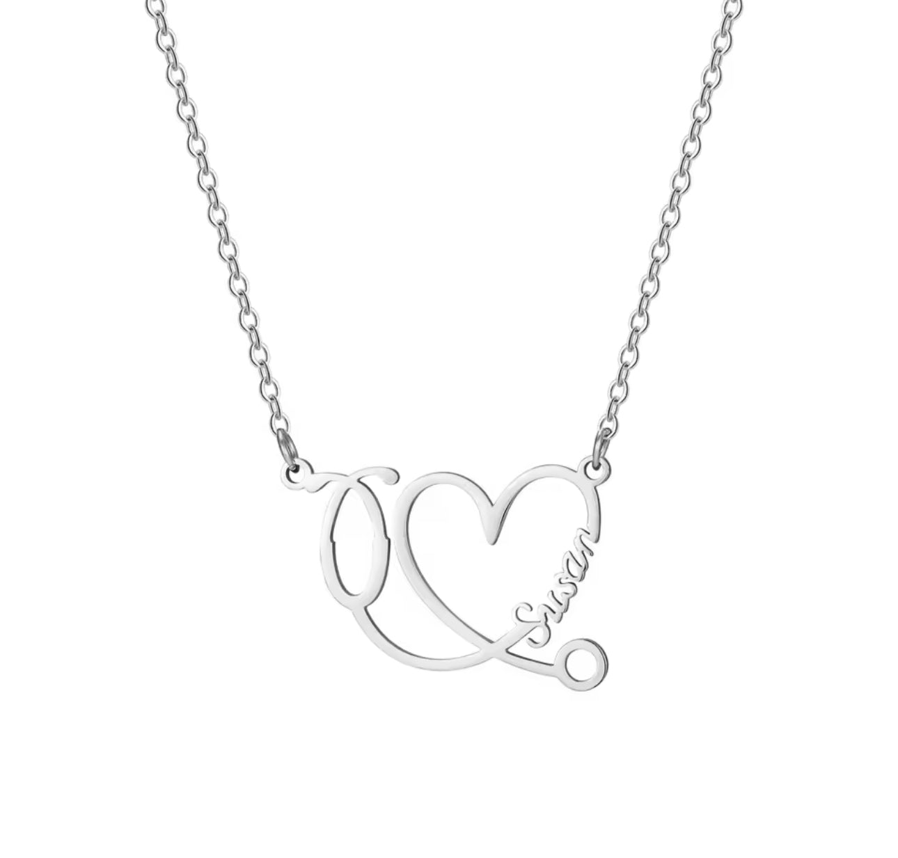 Crafted with a beautiful fusion of style and meaning, the MedHeart stethoscope Custom Necklace is the perfect tribute for healthcare professionals. Designed to symbolize strength, compassion, and dedication, this necklace features a stunning heartbeat line and customizable nameplate.
