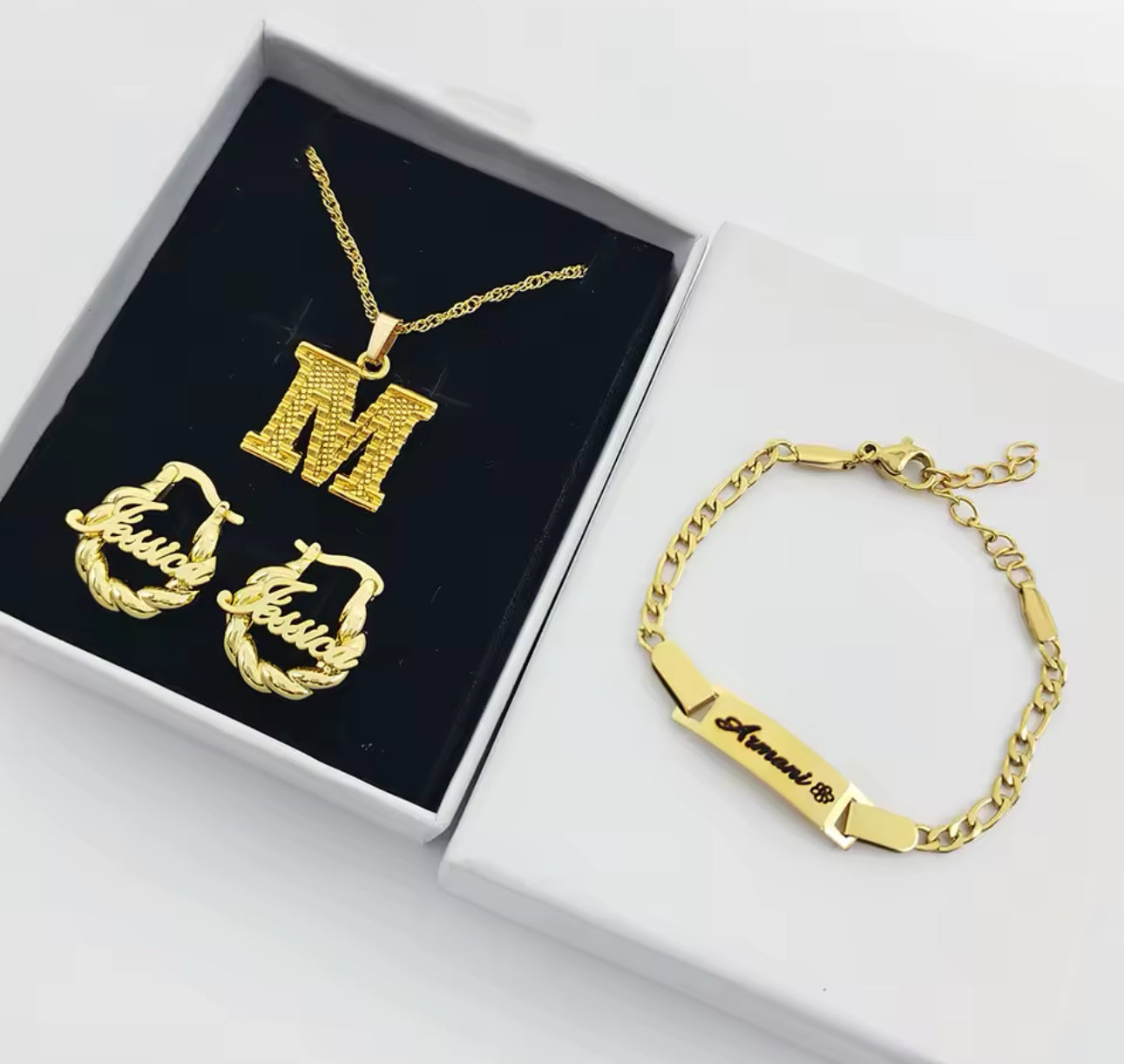 ✨ Custom Name Bracelet – A delicate yet durable bracelet engraved with a name for a special, personalized touch.